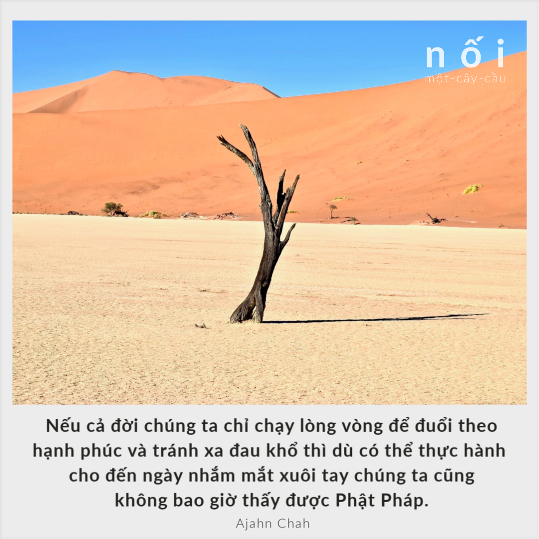 Tìm kiếm hòa bình trong thế gian khi bạn kéo chiếc xe bò và những dấu vết bánh xe vô tận ở đằng sau bạn, giống như bạn lao theo thế gian không ngừng, không nghỉ. Nếu bạn chỉ đơn giản dừng lại sau đó, chiếc xe mới ngừng nghỉ, các bánh xe không còn quay vòng. Chạy theo vòng quay bánh xe thế gian không ngừng; tạo nghiệp bất thiện là như thế đó, nếu mà bạn làm theo cách cũ không có dừng lại. Nếu bạn ngừng lại thì nghiệp sẽ dừng. Đây là cách mà chúng ta tu tập Giáo pháp.