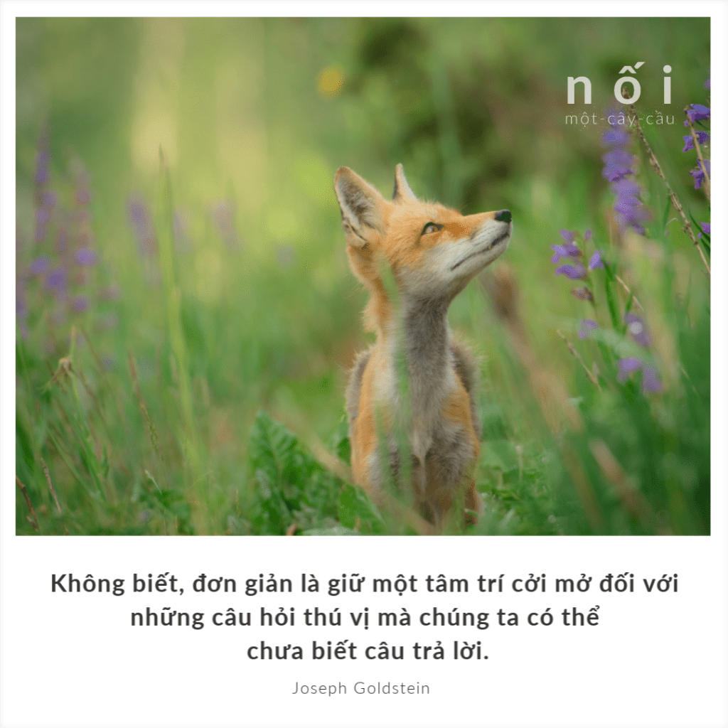 Có rất nhiều điều chúng ta không biết. Cái chúng ta không biết nhiều hơn cái chúng ta biết. Và thật nhẹ lòng khi buông bỏ sự bám chấp của chúng ta vào những quan điểm, ý kiến, đặc biệt là về những gì chúng ta không biết. Một câu thần chú mới bắt đầu hình thành trong tôi: “Ai mà biết chứ?” Trạng thái không biết này không phải là cảm giác bối rối, không phải là hoang mang. Thực ra, nó giống như một hơi thở trong bầu không khí trong lành, một sự mở mang tâm trí. Không biết, đơn giản là giữ một tâm trí cởi mở đối với những câu hỏi thú vị mà chúng ta có thể chưa biết câu trả lời.
