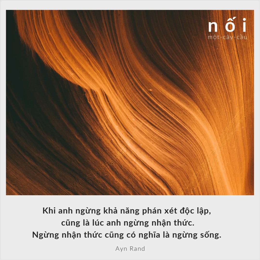 “… Chạy theo người khác thì quá dễ. Còn đứng độc lập một mình lại không dễ chút nào. Anh có thể đóng vai đạo đức giả trước một đám khán giả. Nhưng anh không thể tự lừa dối mình được. Cái tôi của anh chính là viên thẩm phán nghiêm khắc nhất. Nhưng họ thì chạy trốn khỏi cái tôi. Họ sống cả một đời lúc nào cũng chạy trốn. Họ đóng góp vài nghìn cho quĩ từ thiện và do vậy nghĩ mình cũng cao quý – thực ra việc đó quá dễ so với việc đánh giá lòng tự trọng dựa trên những tiêu chuẩn riêng về những thành tựu của cá nhân mình. Người ta có thể đi tìm những vật thế chỗ cho năng lực làm việc – toàn những vật thế chỗ dễ dãi: nào là tình yêu, sự quyến rũ, lòng tốt và công việc từ thiện. Nhưng không có cái gì có thể thực sự thay thế được cho năng lực.”