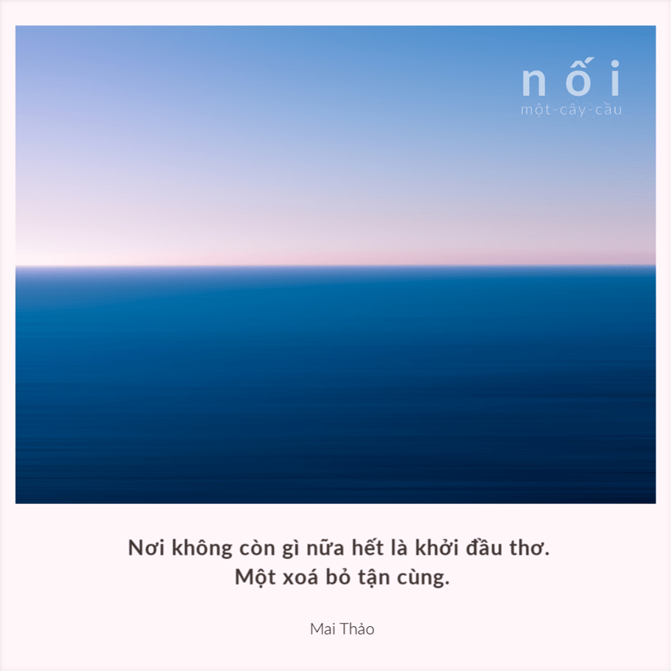 Cõi không là thơ. Không còn gì nữa hết là thơ. Nơi không còn gì nữa hết là khởi đầu thơ. Một xoá bỏ tận cùng. Từ xoá bỏ chính nó. Tôi xoá bỏ xong tôi. Không còn gì nữa hết. Tôi thơ.