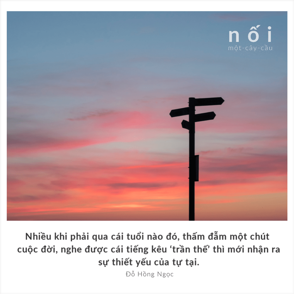 Nhiều khi phải qua cái tuổi nào đó, thấm đẫm một chút cuộc đời, nghe được cái tiếng kêu ‘trần thế’ thì mới nhận ra sự thiết yếu của tự tại. Nhưng đợi đến lúc “nhìn lại mình đời đã xanh rêu” (Trịnh Công Sơn) thì thường đã trễ.