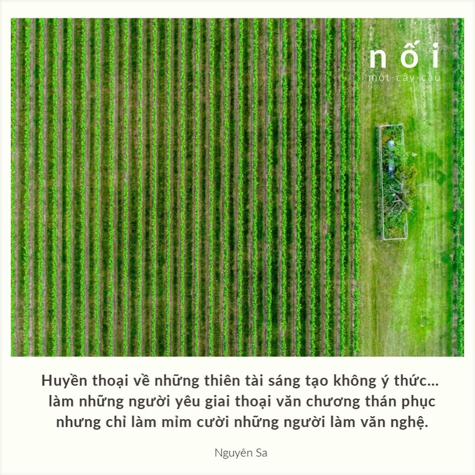 Nghệ sĩ không phải là con ngài đến ngày tháng đột nhiên hoá thành bướm và hào quang của tác phẩm, như phấn mầu trên cánh, do những ngón tay mầu nhiệm của thần linh, một tạo hoá hay một vì sao tốt chiếu mệnh đột nhiên chói lọi trên vai. Không có vấn đề này đây một chú bé chẳng viết lách bao giờ bỗng một ngày đẹp trời nào đó ngồi bên bàn viết, sau đó đứng lên và lập tức Nguyễn Du, Shakespeare, Dante, Hugo bỗng mờ đi như sao buổi sáng. Không có vấn đề này đây nhà văn không bao giờ nghĩ ngợi về nghệ thuật, không bao giờ ý thức về nghệ thuật, chỉ ăn và ngủ lì bì, rồi thỉnh thoảng thức giấc, ngọn gió kỳ diệu liền thổi vào trong mắt, truyền vào trong tay, bay lượn trên giấy và sáng mai các nhà phê bình văn học cúi đầu chào tác phẩm lớn ra đời. Huyền thoại về những thiên tài sáng tạo không ý thức như cô gái bán hàng được nhà đạo diễn tình cờ khám phá, thi sĩ tý hon, nhạc sĩ thần đồng vung tay thành thơ, mỉm cười thành nhạc chỉ làm những người yêu giai thoại văn chương thán phục nhưng chỉ làm mỉm cười những người làm văn nghệ.