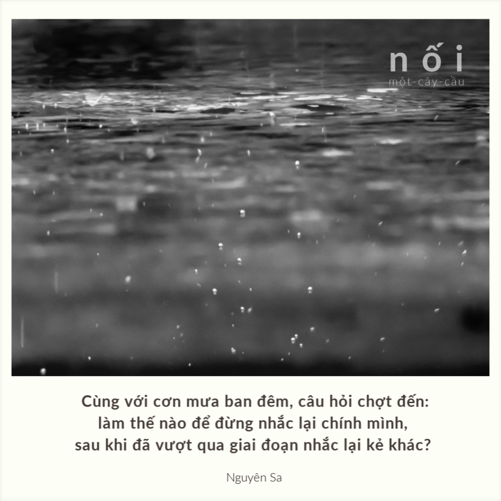 Nghĩ và nói về nghệ thuật tất nhiên không nhằm mục đích phán xét hay truyền giảng vì sự tổng quát hoá và hãnh tiến đó giết chết nghệ thuật, là chất độc làm tê liệt, khô héo dần mòn. Đó có thể là sự tin tưởng hay tìm kiếm. Rồi sức nóng của sự tin tưởng lan rộng, thế giới của sự tìm kiếm cá nhân được sự gia nhập của đồng bạn. Không được hơn, hơn thì quá. Sự suy tưởng đó phải được thực hiện bởi chủ thể, cho chính chủ thể và cứu cánh, như thế, sẽ chỉ là sự sáng tạo của chính mình. Cái nghĩ có được nói lên cũng cốt để được nghe nói lại và tiếng nói lại ấy sẽ là mũi nhọn đẩy cái nghĩ đi nữa, đến cái nghĩ mới và tất cả những tảng đá ấy sẽ không thừa cho kiến trúc nghệ thuật khao khát được hình thành, cho sự sáng tạo xứng danh. Cái nghĩ ấy quả thật chẳng thể nào không có. Quả thật, đã có, đang có và sẽ có. Nghĩ về sự cấu tạo thi ca của Nguyễn Du, về ngôn ngữ của Hồ Xuân Hương, tình bạn của Nguyễn Khuyến. Nghĩ về Thơ Mới. Nghĩ về kiến trúc thơ tự do. So sánh sự sử dụng hình ảnh, từ ngữ, vần điệu cổ điển và hiện đại. Nghĩ về những bài thơ hay, những quan điểm thi ca của các nhà thơ thế giới. Và những người gần gũi. Bạn bè và đối thủ. Sự phê bình chụp mũ, sự bôi nhọ cá nhân, sự tôn sùng lố bịch. Sự đứng lại của người này và tiến vọt của người kia. Vẻ đẹp của bài thơ đăng báo hàng ngày đột nhiên đọc thấy. Ánh sáng ý thức còn và chiếu thẳng vào đúng cân não của tâm hồn mình, về cái viết đã có và cái viết muốn có. Cùng với cơn mưa ban đêm, câu hỏi chợt đến: làm thế nào để đừng nhắc lại chính mình, sau khi đã vượt qua giai đoạn nhắc lại kẻ khác? Những yếu tố sinh lý, xã hội, tâm lý nào đã là nguồn khởi phát sự sinh hoạt của tưởng tượng sáng tạo? Những kỹ thuật nào đã được sử dụng? Mình muốn chứng minh gì? Làm thế nào để hơn và khác? Những dấu hỏi cuồng lưu này không độc lập với sự sáng tạo mà nằm ở trong cái kén kỳ diệu đó. Những thắc mắc, lo âu, tìm kiếm là hơi thở của sáng tạo chân đi. Không đợi khi đôi cánh đã hạ xuống, đôi chân dừng lại mệt mỏi, không đợi “già rồi hãy nghĩ” dù có thể, bởi vì khi sự khô héo đã đến, sự sống đã rút đi, hình ảnh của nó để lại chắc mờ nhạt lắm, sự suy tưởng sẽ chẳng thể tươi thắm, rõ ràng. Và hơn nữa, bởi vì, không tham vọng tổng quát hoá sự suy tưởng về nghệ thuật, với chính mình, chỉ cần thiết bây giờ để trong chuyến bay không mừng rỡ vượt qua núi cao khi chỉ lướt qua ngọn cờ, sung sướng đã đi xa khi phi đạo hình tròn. Bởi vì, trên vùng cao của sự sáng tạo đích thực ấy, ánh sáng ném xuống tuyết trắng sáng chói nên sự vận dụng thị giác thiếu tinh luyện có thể đem lại ảo ảnh.