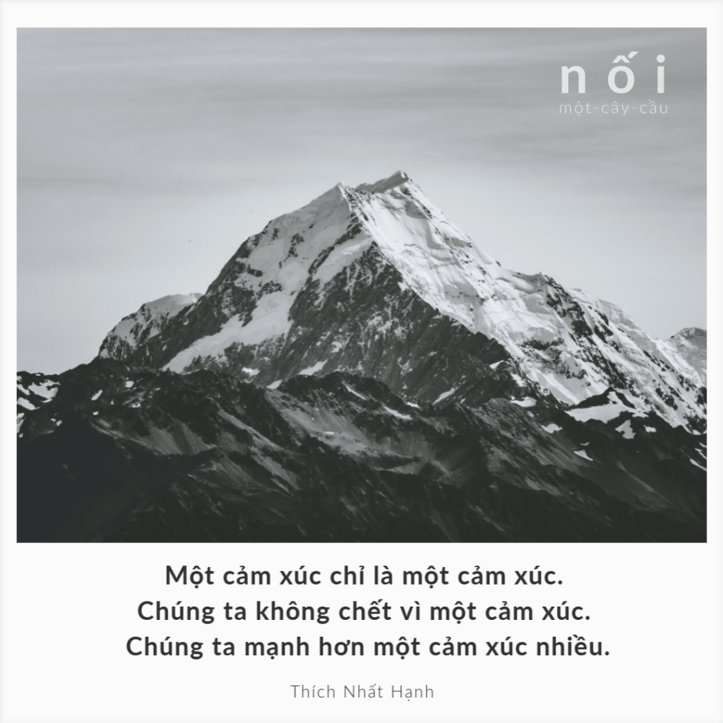 Khi một cơn giông tố đến, nó ở một thời gian, rồi nó đi. Một cảm xúc cũng giống như thế, nó đến, nó ở lại một lúc, rồi nó đi. Một cảm xúc chỉ là một cảm xúc. Chúng ta không chết vì một cảm xúc. Chúng ta mạnh hơn một cảm xúc nhiều. Vậy khi bạn để ý biết một cảm xúc bắt đầu đi lên, thì điều quan trọng là bạn ngồi xuống cho vững vàng, hay bạn nằm xuống, vì nằm cũng là một vị thế vững vàng. Rồi bạn tập trung sự chú ý vào cái bụng của bạn. Ðầu của bạn giống như một ngọn cây trong một cơn bão. Tôi không ở lại trên ấy đâu. Hãy chú ý xuống thân cây, ở đấy vững chãi hơn.