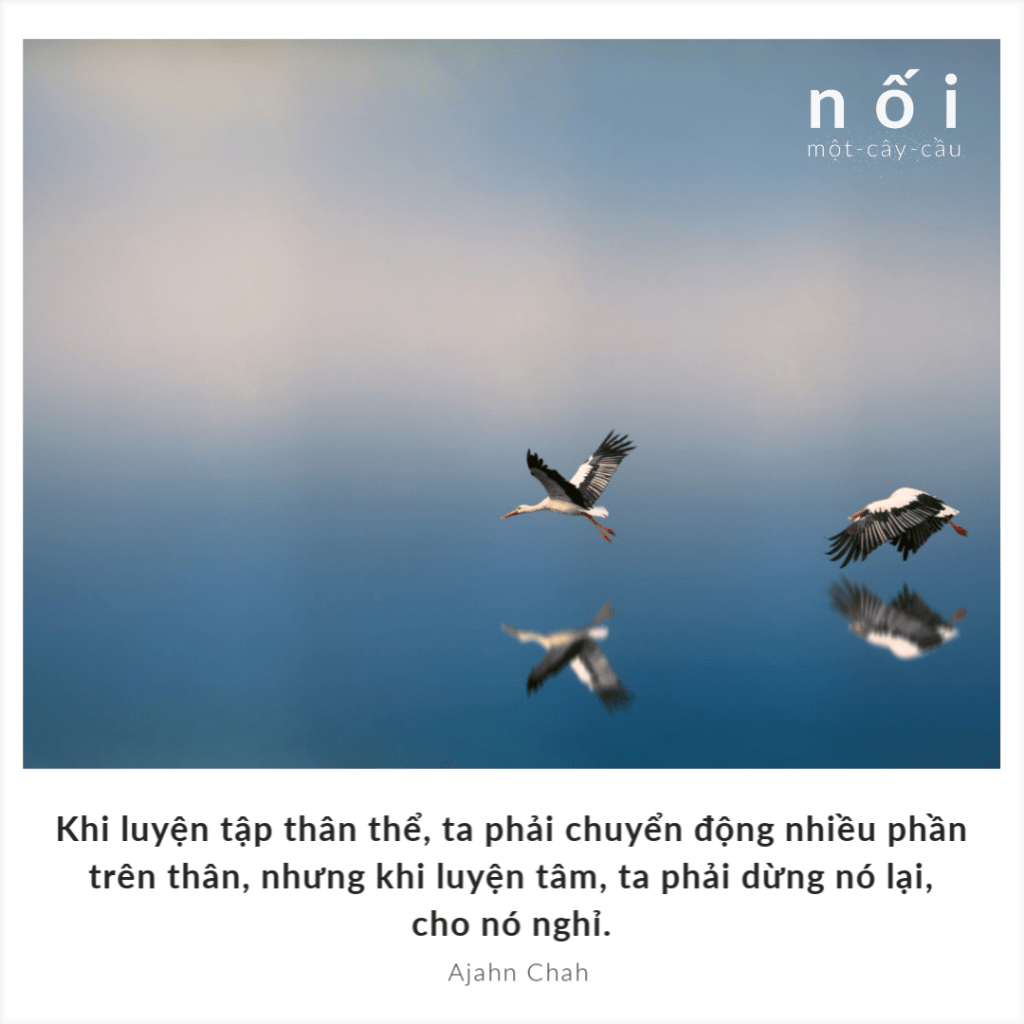 Rèn luyện thân và rèn luyện tâm giống nhau vì cùng làm cho thân và tâm mạnh mẽ hơn, nhưng phương pháp tập luyện thì khác nhau. Khi luyện tập thân thể, ta phải chuyển động nhiều phần trên thân, nhưng khi luyện tâm, ta phải dừng nó lại, cho nó nghỉ. Như khi hành thiền, ta phải cố gắng để tâm buông xả mọi thứ. Đừng để tâm nghĩ đến điều này, điều nọ hay bất cứ thứ gì. Hãy để tâm trụ trên một đối tượng. Dần dần nó sẽ mạnh lên. Trí tuệ sẽ phát sinh. Giống như con dao ta đã mài giũa kỹ. Nếu ta dùng dao để cắt đá, cắt gạch, cắt cỏ, cắt bất cứ thứ gì không chọn lựa, thì dao sẽ mẻ, sẽ cùn.