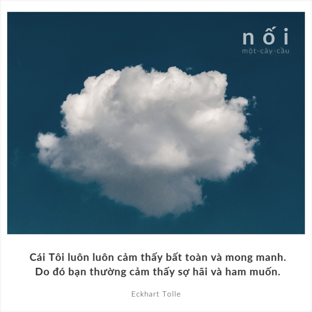 Khi một ý tưởng khởi lên ở trong đầu chiếm lấy toàn bộ sự chú tâm của bạn, điều này có nghĩa là bạn đã hoàn toàn đồng nhất mình với tiếng nói vang vang ở trong đầu mình. Ý tưởng của bạn đã được đầu tư với một cảm nhận về chính mình. Đây chính là bản ngã, “cái Tôi” được làm nên bởi suy tư và những cảm xúc miên man ở trong đầu bạn. Cái Tôi luôn luôn cảm thấy bất toàn và mong manh. Do đó bạn thường cảm thấy sợ hãi và ham muốn, đây là hai cảm giác luôn thống trị và thúc đẩy của bản ngã ở trong bạn.
