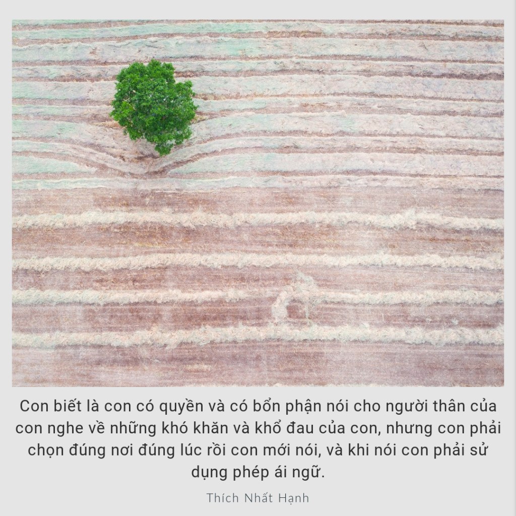 Trong khi con nói, có thể là những vết thương trong con bị chạm tới và tâm hành buồn giận trong con phát khởi. Và con hứa sẽ ngừng nói và trở về theo dõi hơi thở, để nhận diện và mỉm cười với nó. Con sẽ xin phép người đang ngồi nghe cho con ngưng lại một vài phút. Chừng nào nhận thấy tâm con bình an trở lại, con mới tiếp tục thực tập nói ra những cảm nghĩ và nhận xét của con.