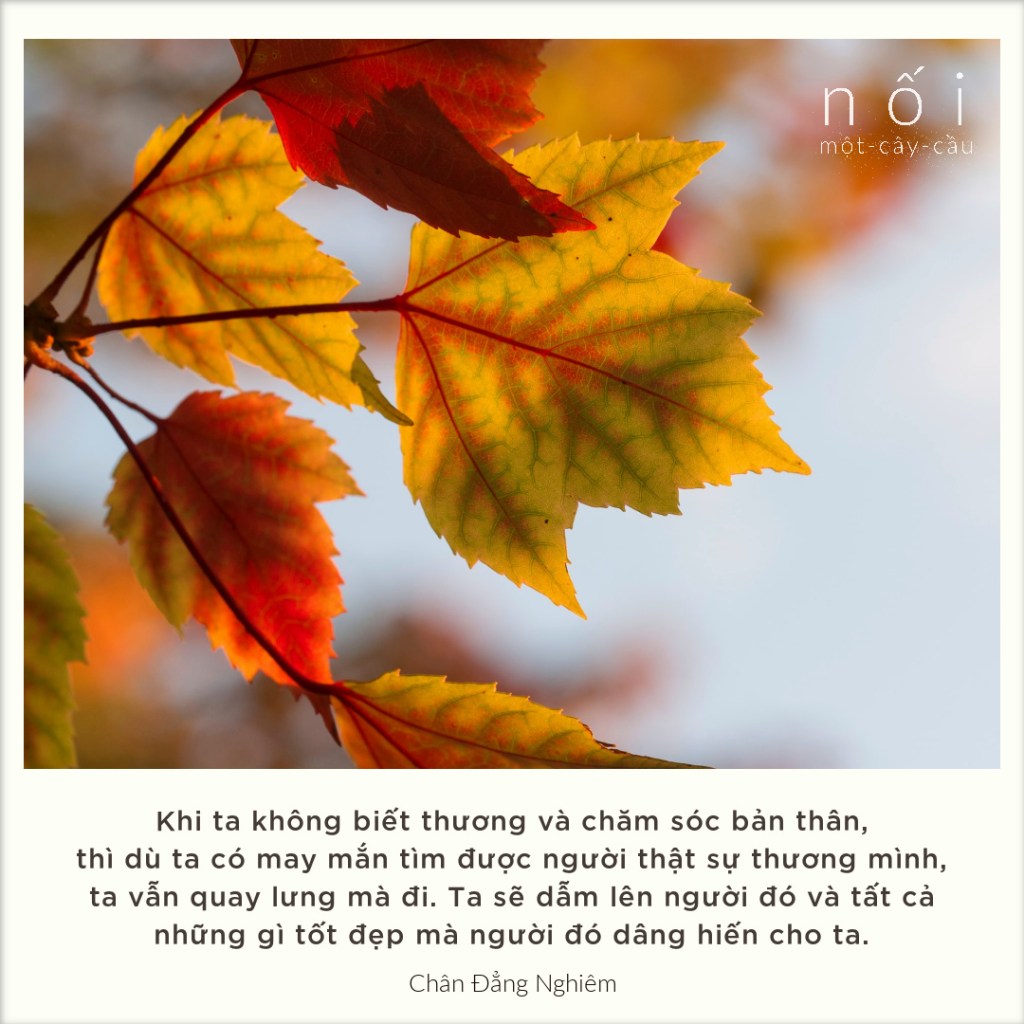 Khi ta không biết thương và chăm sóc bản thân, thì dù ta có may mắn tìm được người thật sự thương mình, ta vẫn quay lưng mà đi. Ta sẽ dẫm lên người đó và tất cả những gì tốt đẹp mà người đó dâng hiến cho ta.