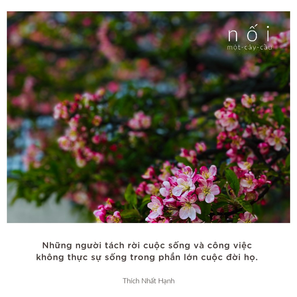 Ngày nay, người ta thường nói về cân bằng giữa công việc và cuộc sống. Người ta có khuynh hướng nghĩ rằng công việc và cuộc sống là hai thứ tách biệt nhau. Thế nhưng, đó không phải là cách nghĩ đúng. Sau khi lái xe đến chỗ làm và đậu xe xong, bạn có thể lựa chọn giữa cách đi thiền hành trong chánh niệm vui tươi hay là đi một cách hối hả, gấp gáp vào văn phòng. Dù sao đi nữa, bạn cũng phải đi qua quãng đường đó. Nếu bạn biết cách để đi, biết cách có mặt đó cho mình thì quãng đường từ bãi đậu xe vào đến văn phòng có thể mang lại cho bạn nhiều niềm vui và hạnh phúc. Bạn có thể buông bỏ những căng thẳng trong thân và tiếp xúc với những mầu nhiệm của cuộc sống với từng bước chân của bạn.