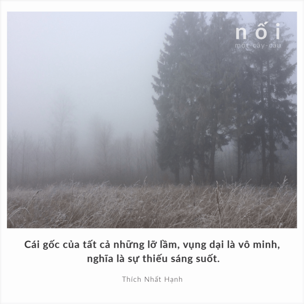 Cái gốc của tất cả những lỡ lầm, vụng dại là vô minh, nghĩa là sự thiếu sáng suốt. Vô minh cũng là thất niệm, là bóng đêm, là sự thiếu thốn ánh sáng. Minh là ánh sáng, vô là không. Chúng ta đã sống trong bóng tối, đã sống không chánh niệm và đã bước những bước vấp ngã. Chúng ta đã để bóng tối bao trùm ngày này qua ngày khác, tháng này qua tháng khác.